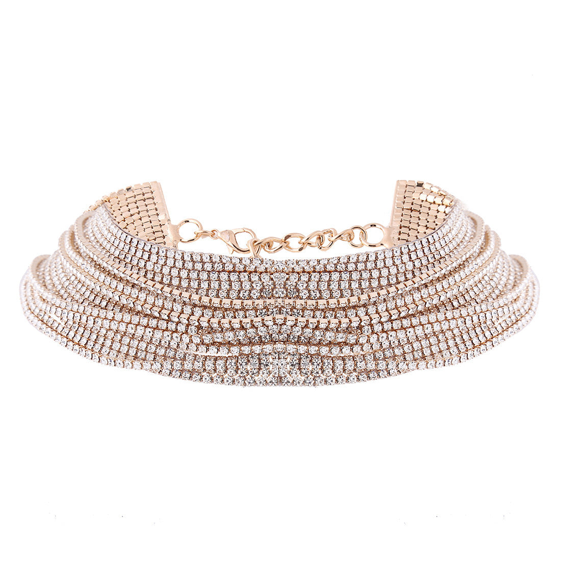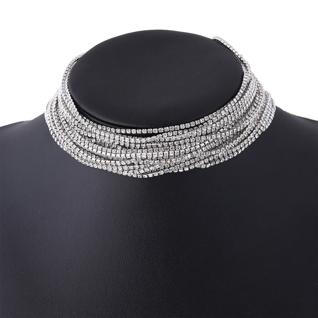 Rhinestone-embellished Multi-layer Choker Necklace for Stylish Women