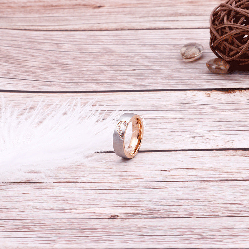 New Titanium Steel Heart-Shaped Couple Ring with Zircon for Cross-Border Jewelry Supply
