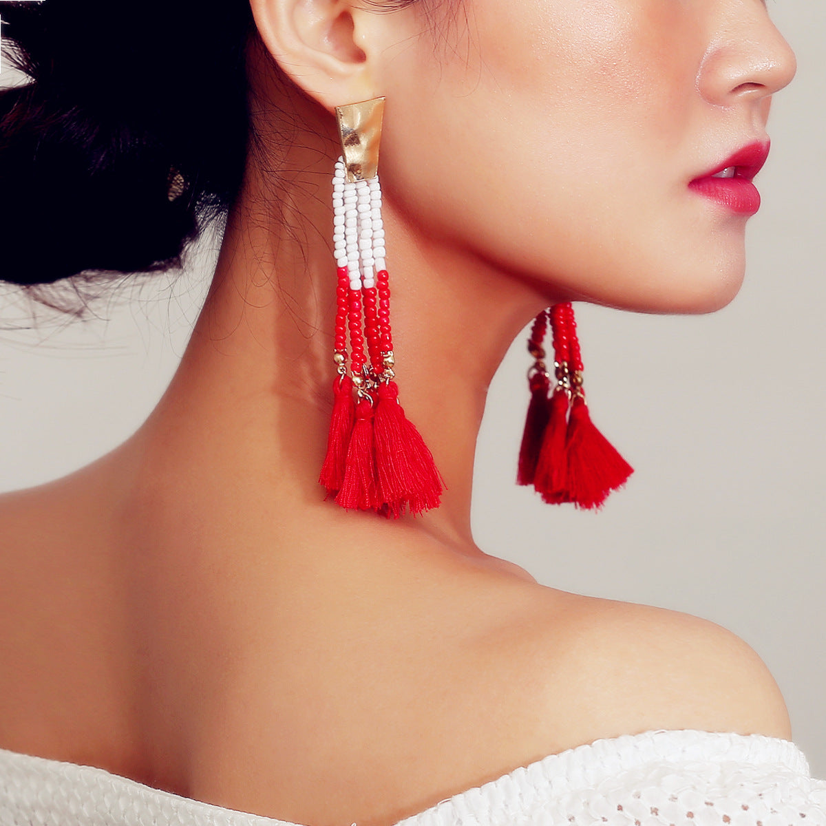 Elevate your style with these unique earrings that are designed to add a touch of retro charm to any outfit. The exaggerated tassel detail sets them apart from ordinary earrings, making them a must-have accessory for fashion-forward individuals.