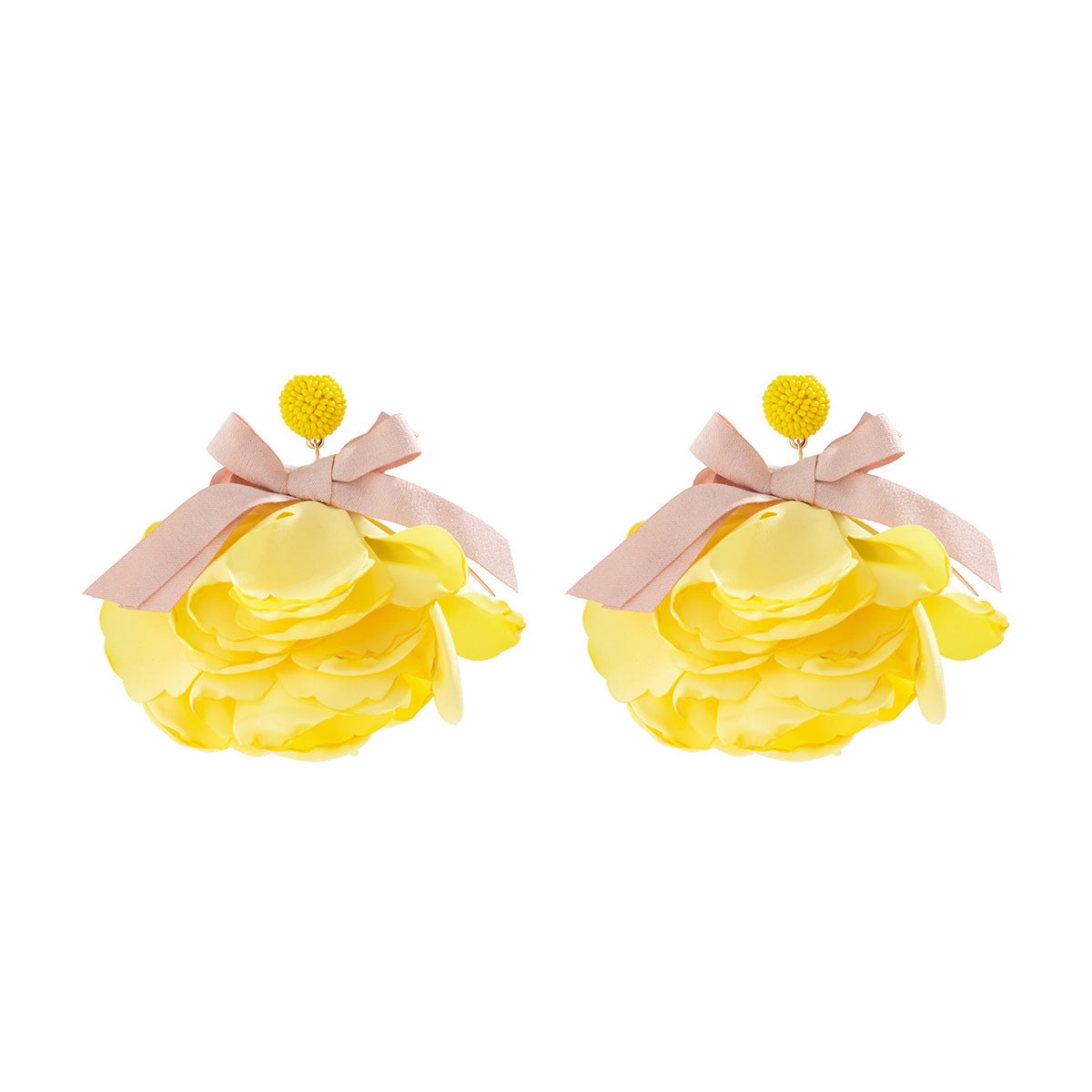 Elegant Rose Bow Earrings with Handmade Fabric Design