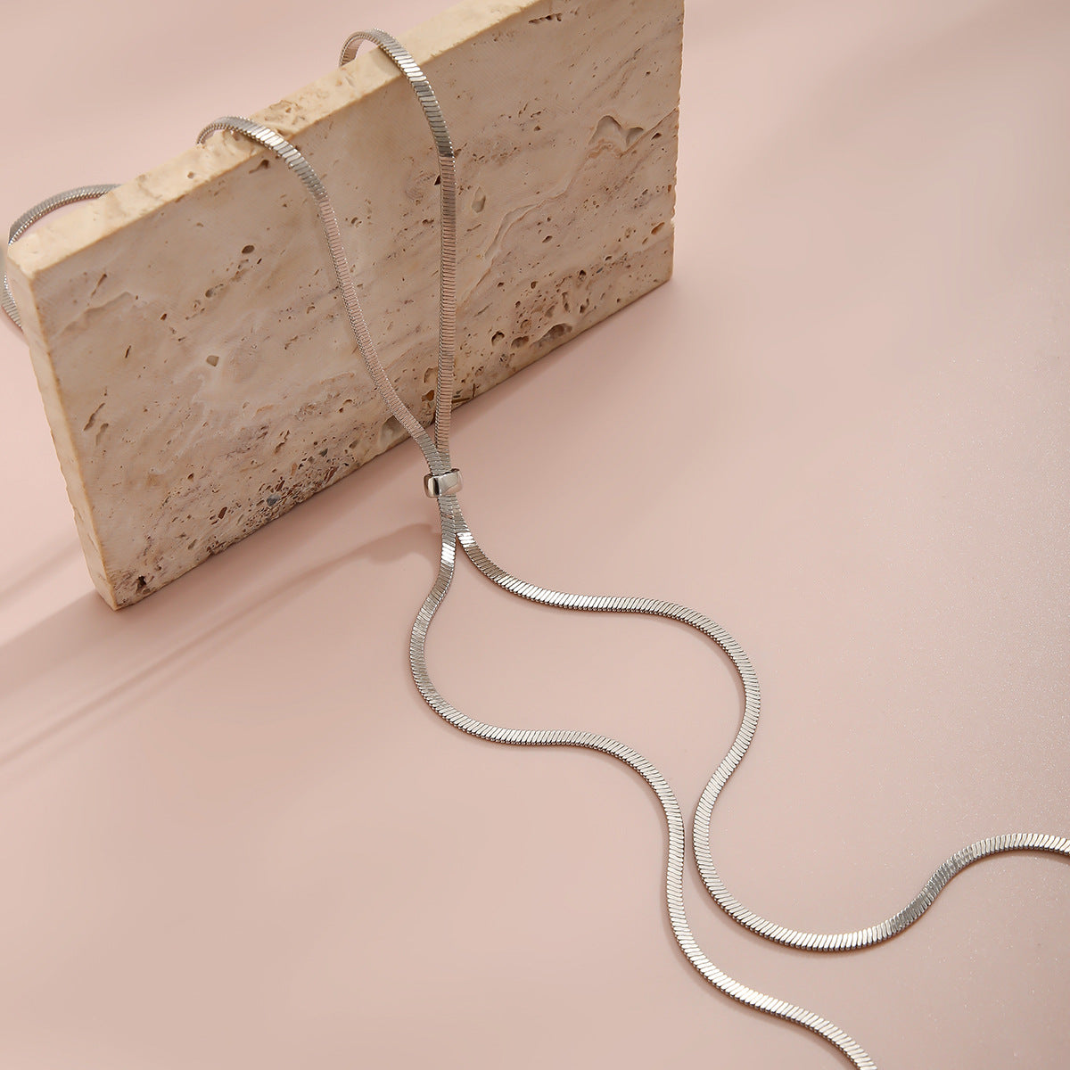 Unleash your inner fashionista with our European and American Cross-border Jewelry piece - the Vienna Verve Necklace. Elevate your outfit effortlessly with this Personalized Long Snake Bone Chain Tassel Necklace, designed for the modern, trend-setting woman.