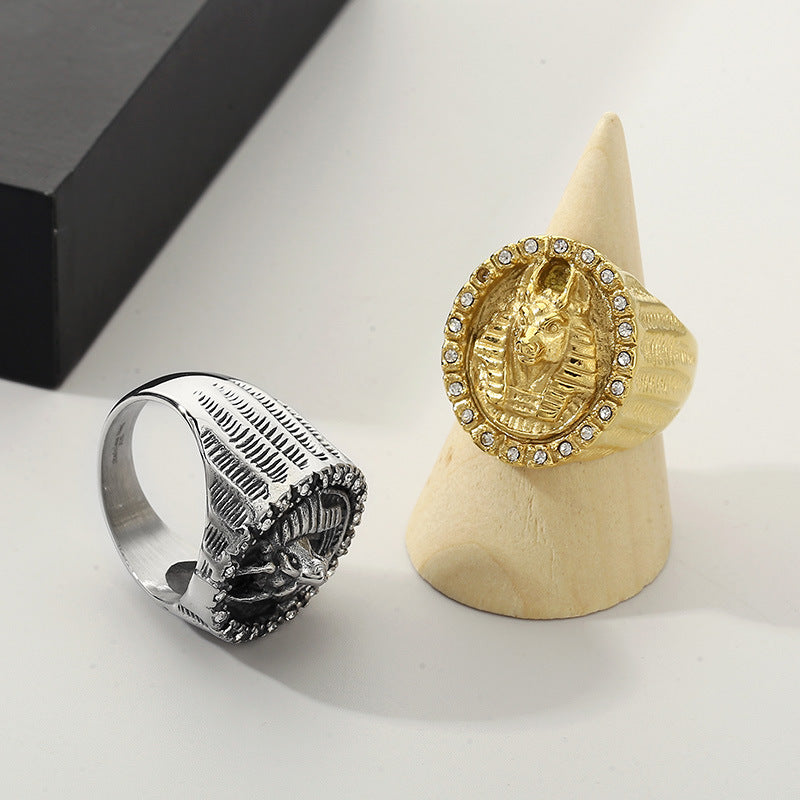 Step into a world of unique style with this stunning European and American cross-border trend personalized punk jewelry. This striking ring, adorned with a captivating Egyptian Sphinx design, is the perfect accessory for modern men who appreciate both fashion and history.