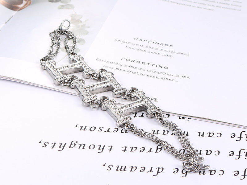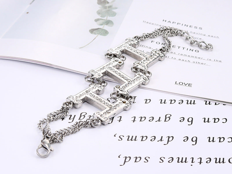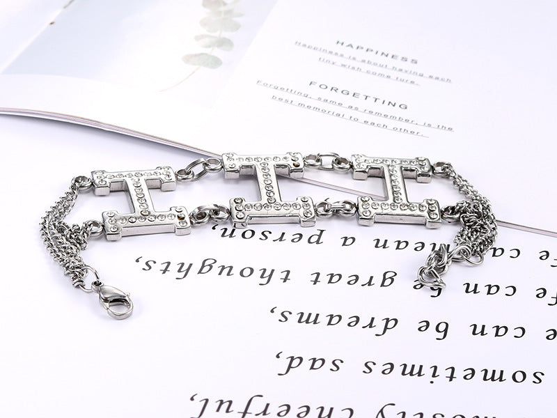 Elevate your style with our European and American fashion I-shaped titanium steel bracelet. This personalized and simple bracelet is designed for the modern woman who appreciates both sophistication and durability in her jewelry.