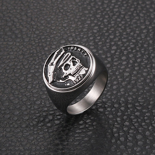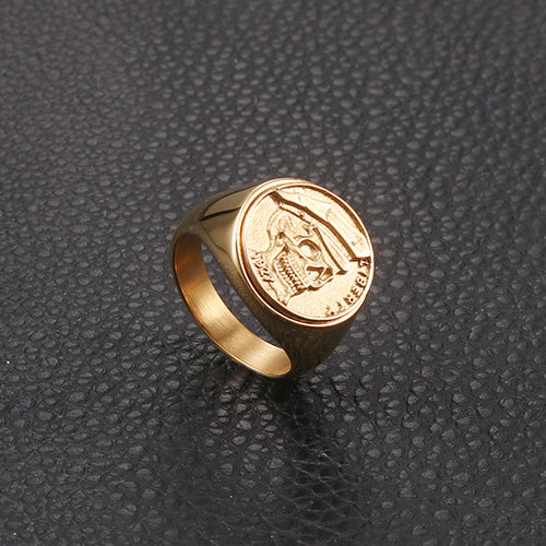 Step into the spotlight with our European and American fashion warlord skull ring—a striking piece of jewelry designed for the modern man who embraces his individuality. Crafted from durable titanium steel, this ring seamlessly merges edgy aesthetics with long-lasting quality.