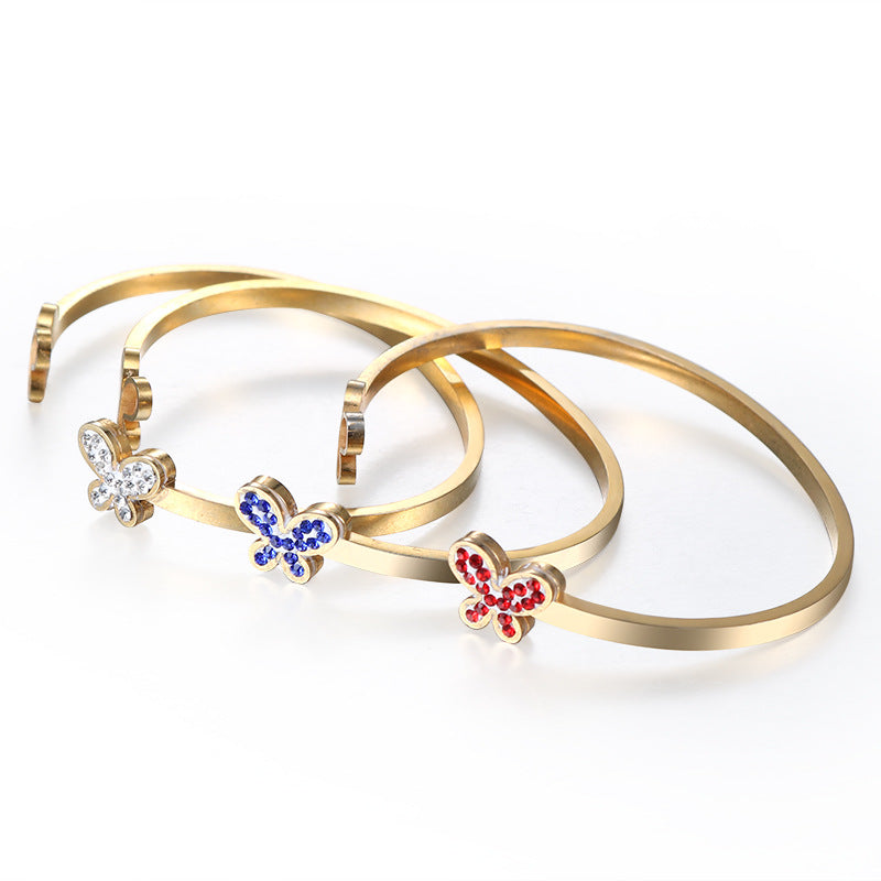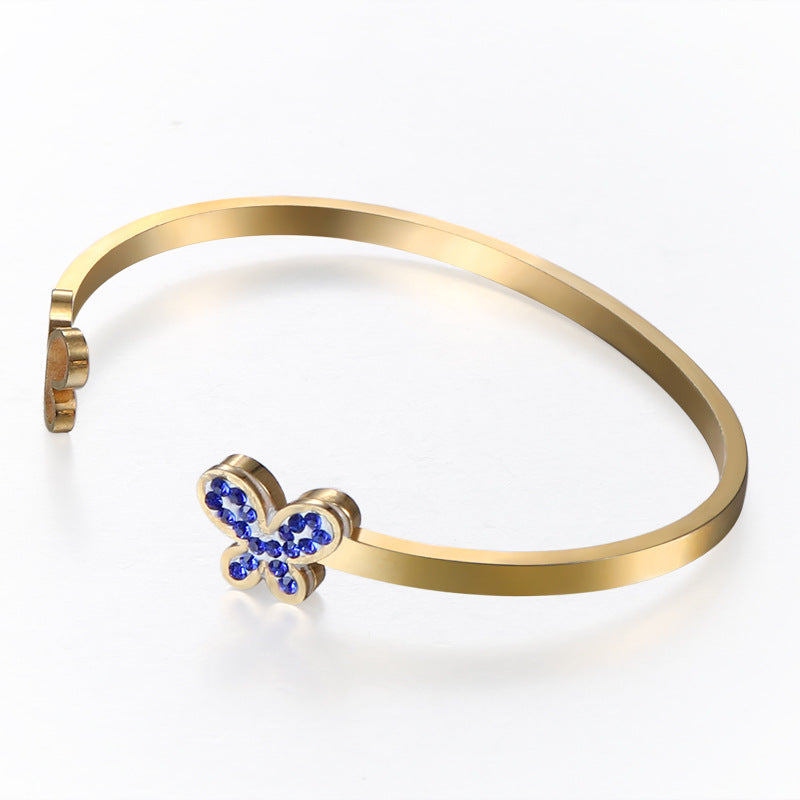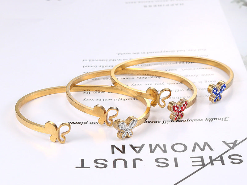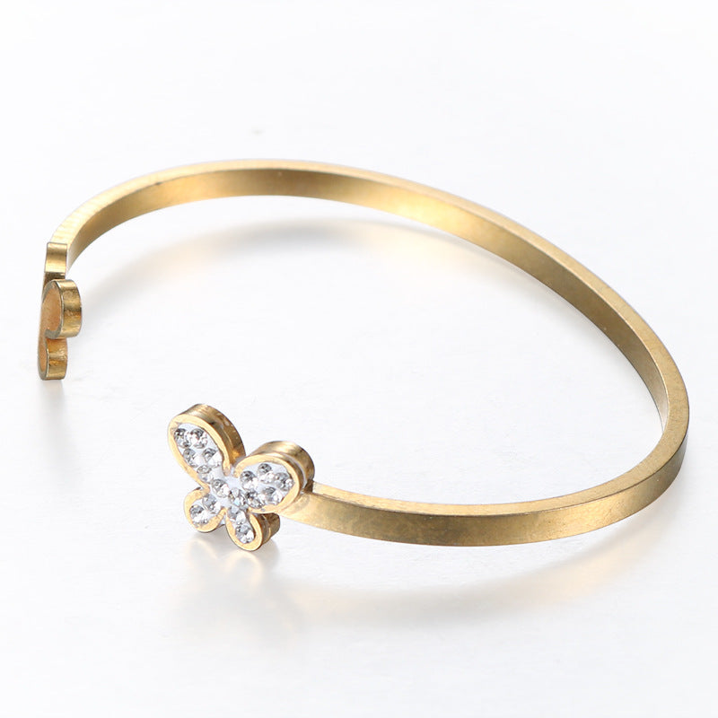 Chic Titanium Steel Butterfly-Design Bracelet for Women with Zircon Accents