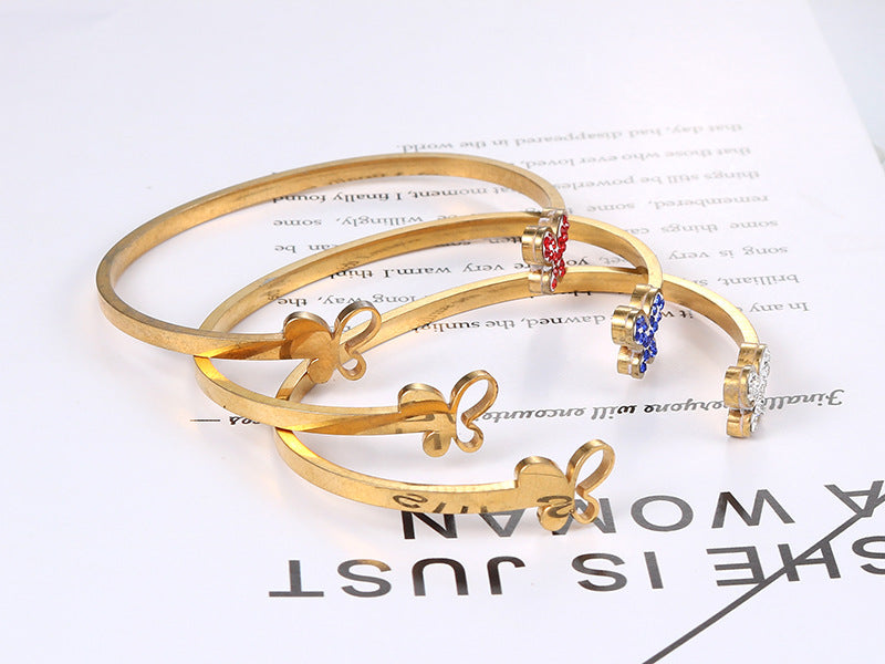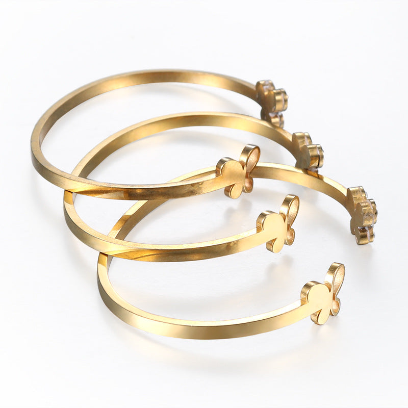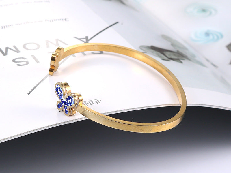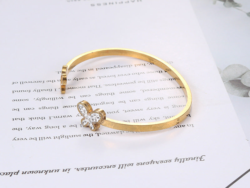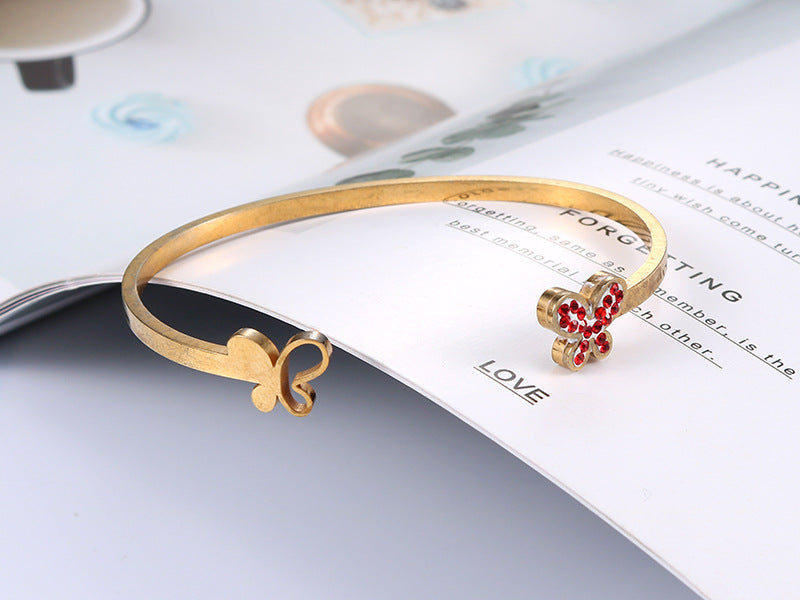 Introducing the exquisite European and American fashion women's butterfly opening bracelet, a stunning piece that seamlessly combines simplicity with a unique personality. Crafted from high-quality titanium steel, this bracelet is not just a fashion accessory; it's a statement of individuality and sophistication.