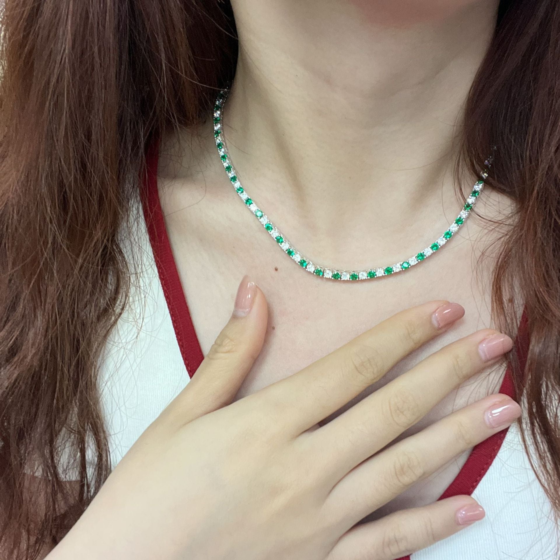 Featuring a stunning array of lab-grown gemstones and sparkling zircons, this necklace offers a unique blend of sustainability and luxury. The elegant single-row design highlights each gemstone's brilliance, while the secure claw settings ensure they are beautifully showcased.
