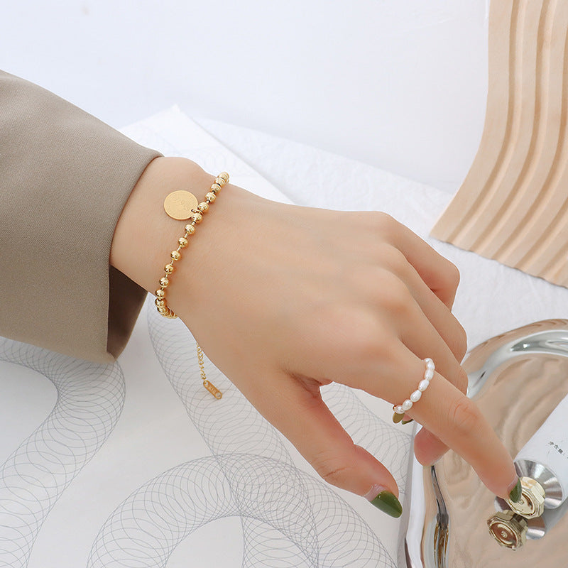Step into the world of European and American ins retro court style with our exquisite geometric steel ball bracelet. Crafted from titanium steel and plated with 18K gold, this piece exudes a light luxury trend that will elevate any outfit effortlessly.