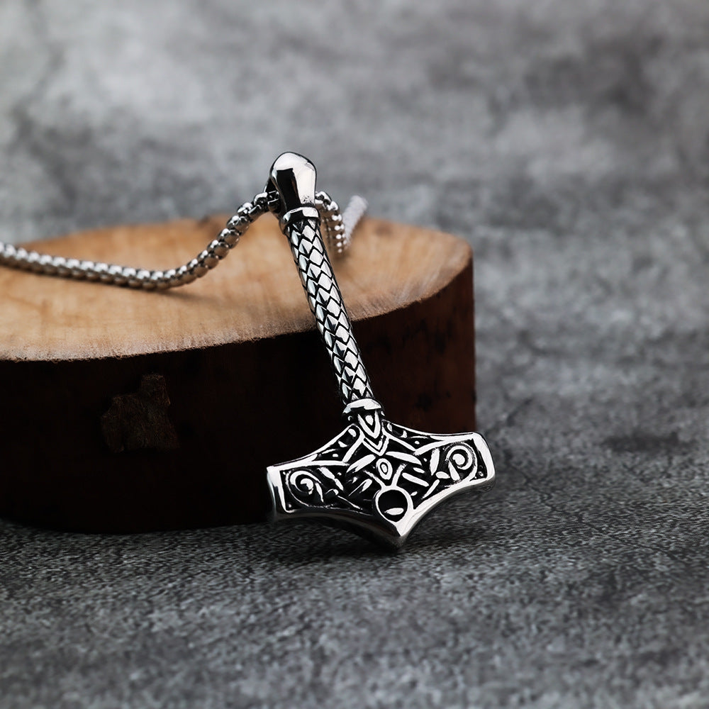 Discover the perfect blend of strength and style with our European and American jewelry wholesale titanium steel pendant men's stainless steel necklace retro Viking Raytheon hammer for men. This exceptional piece from the Planderful collection, named Norse Legacy, is designed for those who appreciate the rich history and craftsmanship of Viking culture.