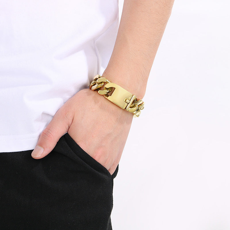Introducing the Planderful European and American punk personality bracelet — a bold, unapologetic statement piece crafted in titanium steel. This domineering classic features a 20mm-wide four-sided grinding Cuban chain, delivering a textured, high-impact look that commands attention on any wrist. Designed for both men and women, this unisex bracelet blends edgy street style with durable metal construction for everyday wear.