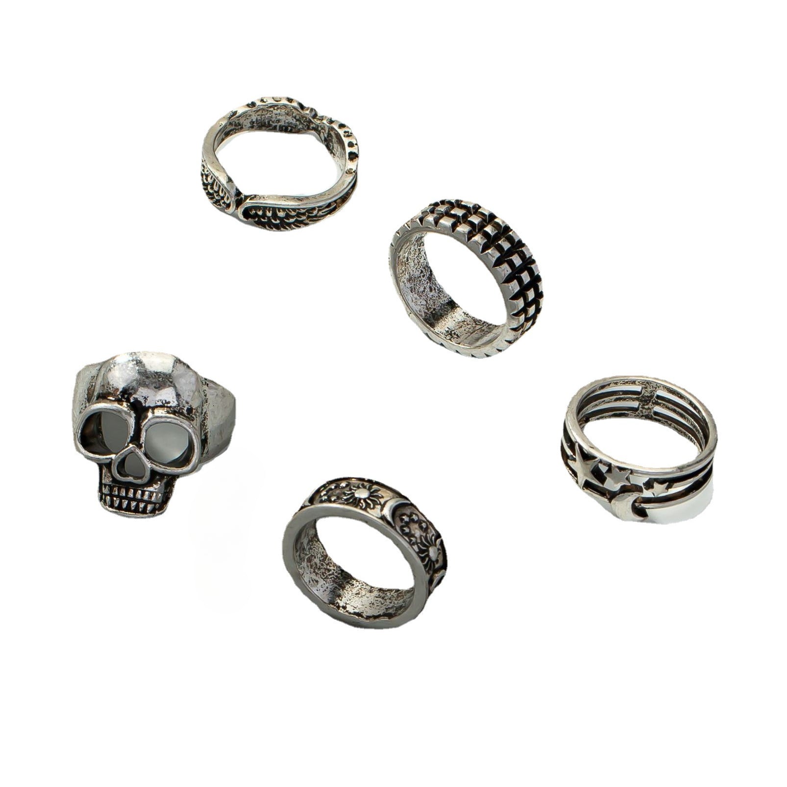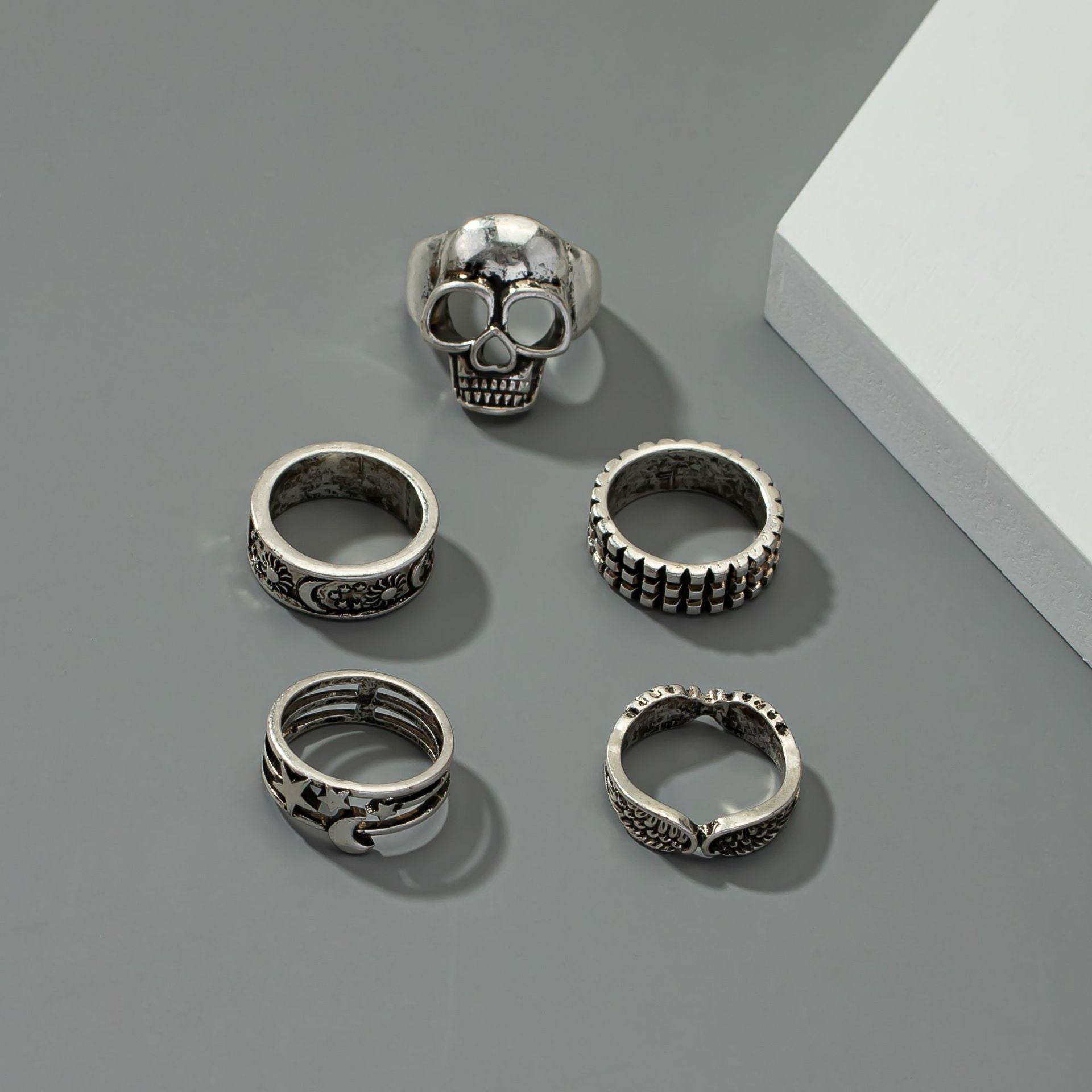 • Indulge in a set of 5 pairs of men's rings featuring a unique moon star and cross-border ins geometric pattern.