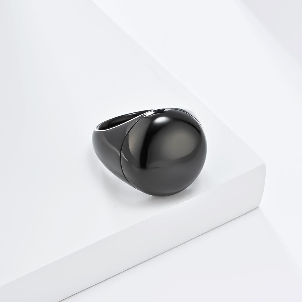 Crafted from premium titanium steel, this ring is not only visually stunning but also durable and lightweight, making it perfect for everyday wear. Its smooth, curved design is finished with a high-gloss polish that catches the light beautifully, ensuring you stand out in any crowd.