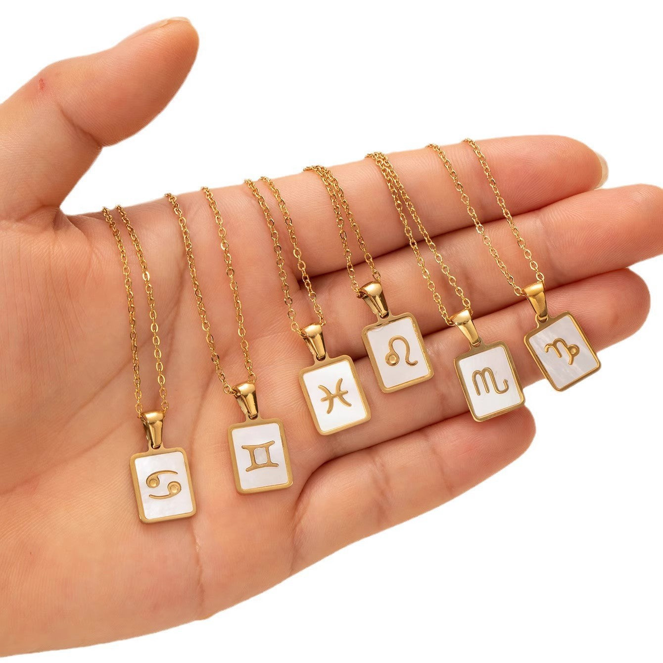 The 12-constellation pendant offers a refined nod to the cosmos—enough presence to elevate a look without shouting for attention. Its minimalist shell-inspired silhouette rests beautifully with both casual tees and tailored separates, making it a versatile centerpiece in any jewelry wardrobe. Crafted in durable stainless steel, this necklace resists tarnish and keeps a radiant luster through daily wear. A thoughtful gift for celestial lovers, minimalists, or anyone who appreciates a timeless, story-driven piece that can be worn alone or layered with other favorites.