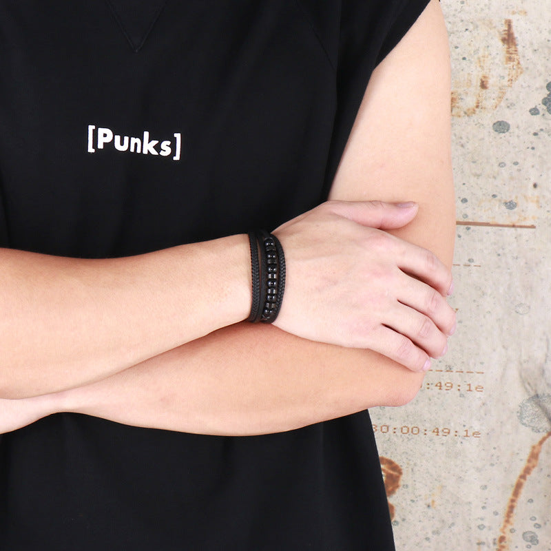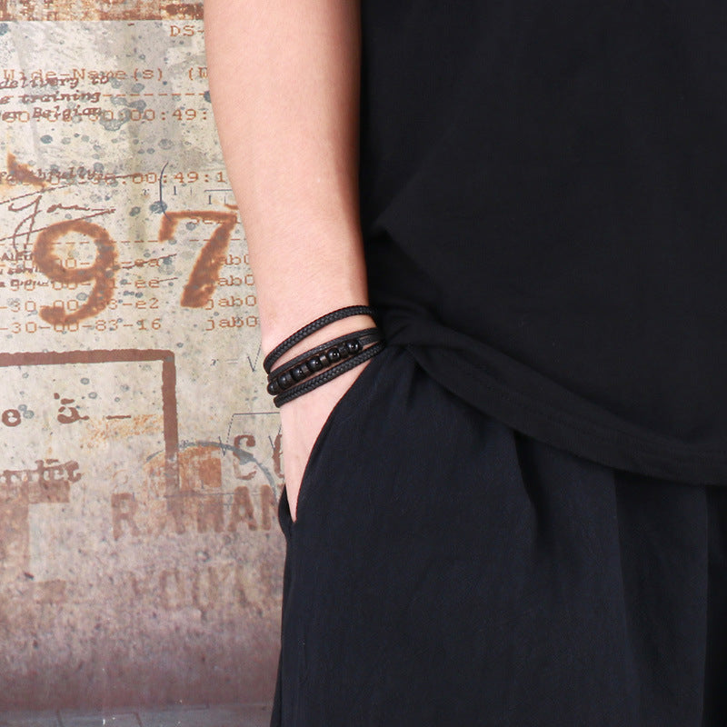 Planderful presents the European and American stainless steel leather bracelet—a multi-layer, black leather woven bracelet crafted for men. Part of the Everyday Genie collection, this bracelet pairs rugged stainless steel accents with supple leather for a versatile, modern look.