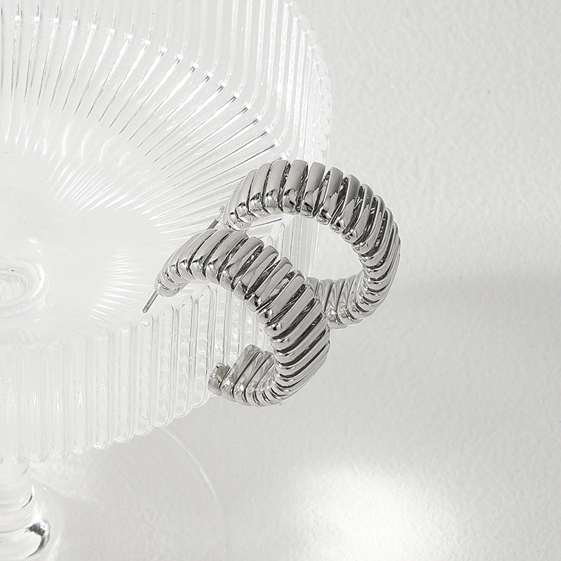 • Embrace sophistication with a touch of edge wearing our metal C-shaped texture chain earrings