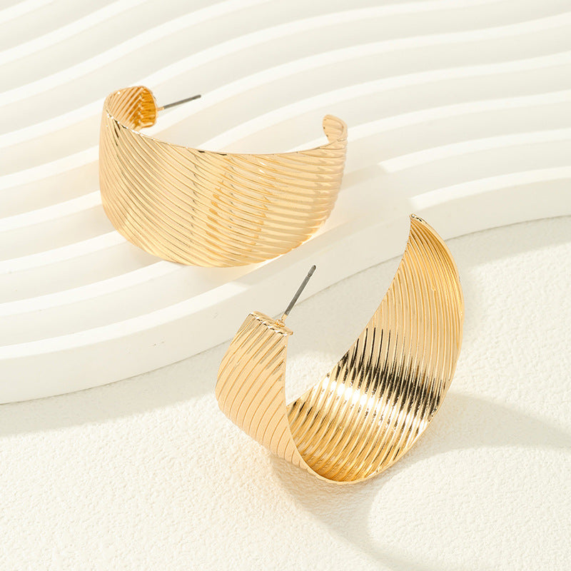 Exaggerated Wide Face C-Shaped Earrings in High-End Retro Style