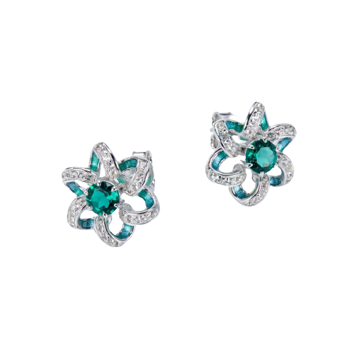This chic green enamel flower studs earrings feature a gleaming green gemstone. Crafted from sterling sterling, they are sure to add a touch of sophistication to any outfit.
