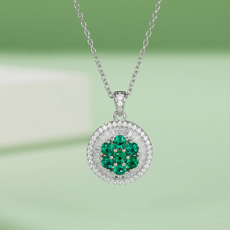 Double Halo Round Green Zircon Necklace