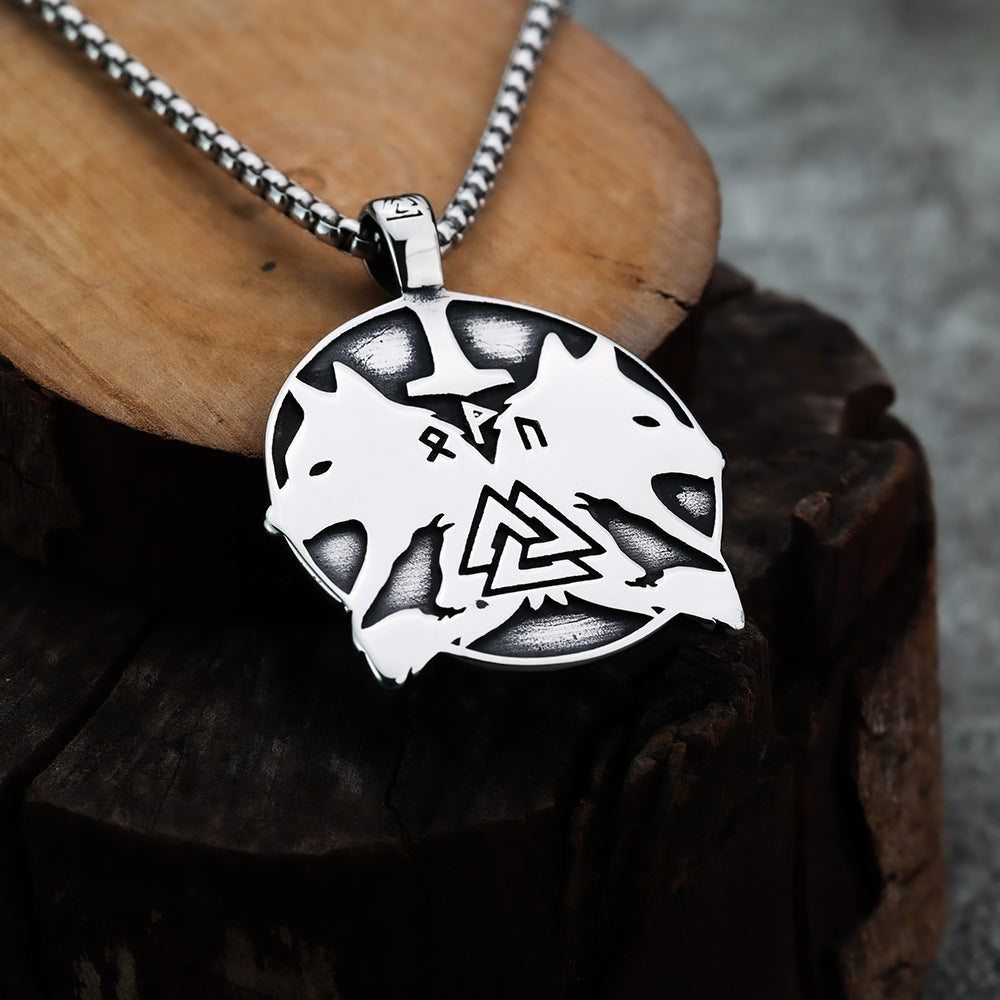 Crafted from high-quality titanium steel, this pendant showcases the fierce double wolf head design, symbolizing loyalty and courage. It is perfect for those who embrace the Viking spirit and want to express their personality through their accessories.