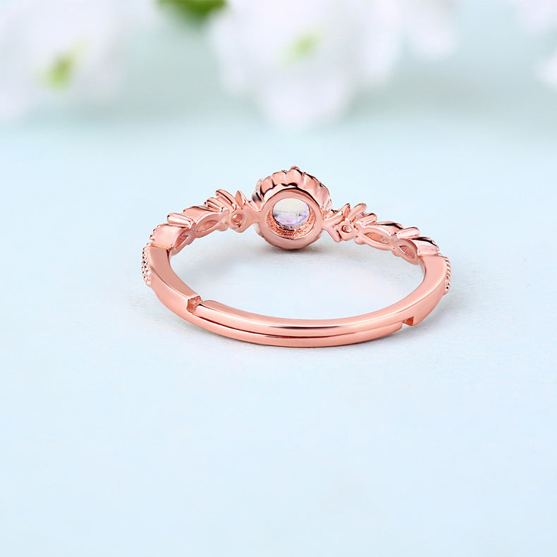 Slip on a timeless classic with this Cathedral style Round Shape Pink Crystal Opening Silver Ring. The main stone is a round-shape Barbie pink crystal, inlaided on a sturdy sterling silver plated in rose gold ring arm featuring an intricate hollow pattern and decorated with small zircons. An elegant and luxury crystal accessory for any special occasion.