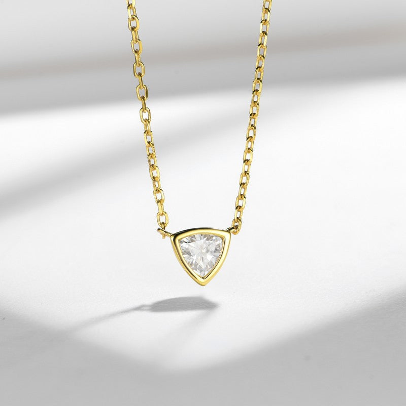 Planderful Moissanite Pendant 0.5ct Triangular Sparkling S925 Silver Gold Necklace For Women