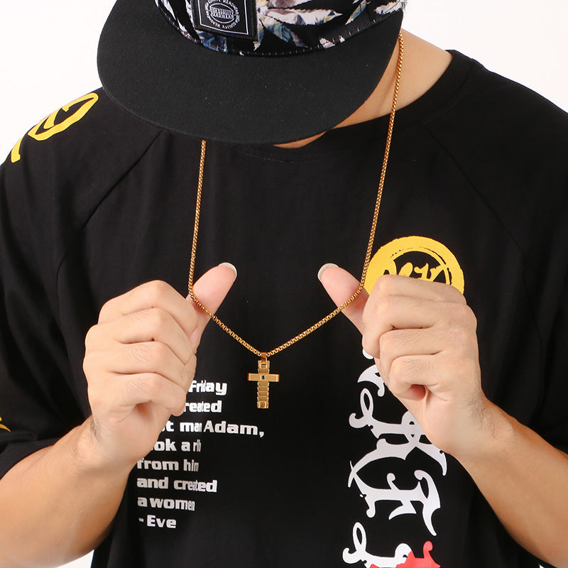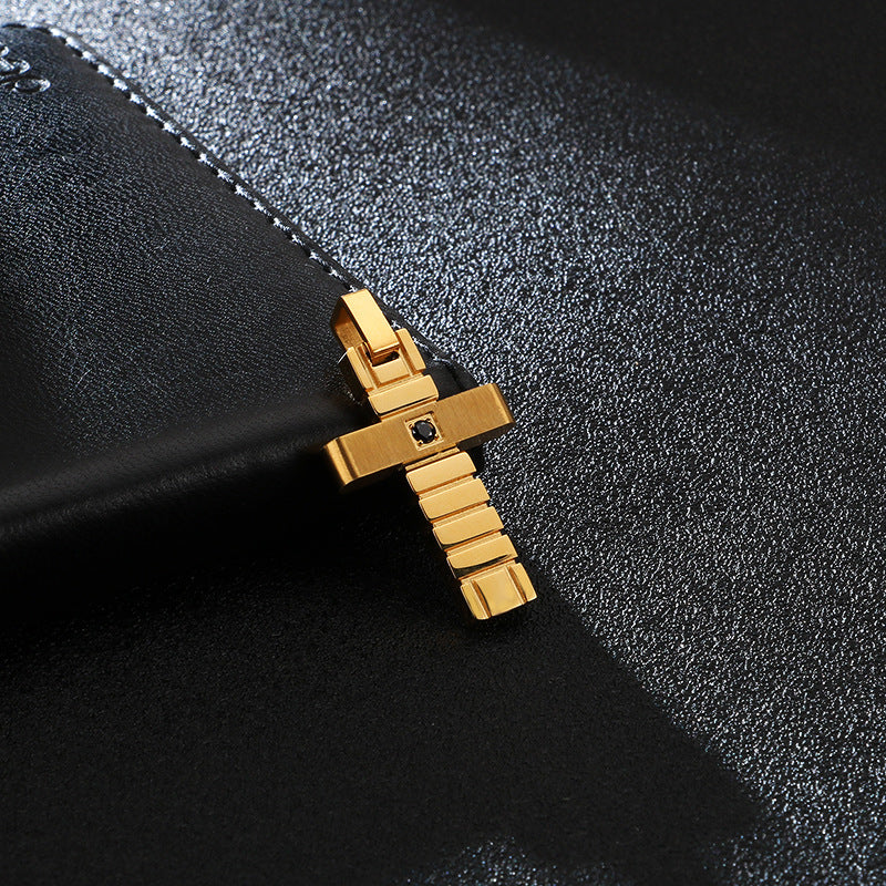 Simple and Stylish Stainless Steel Zircon Pendant with Mini Fashion Cross - Men's Golden Pendant