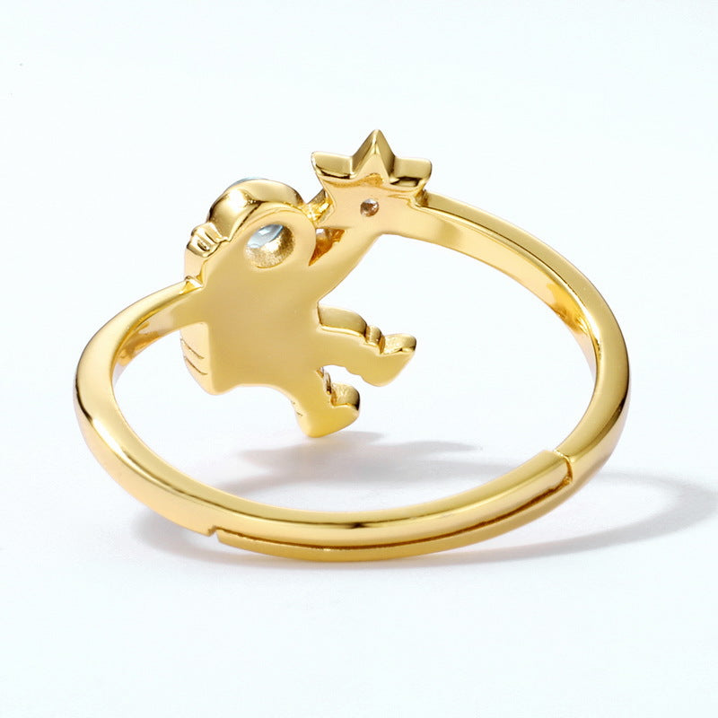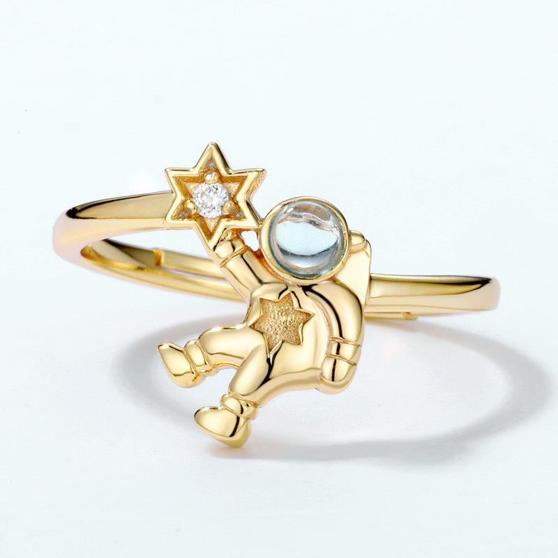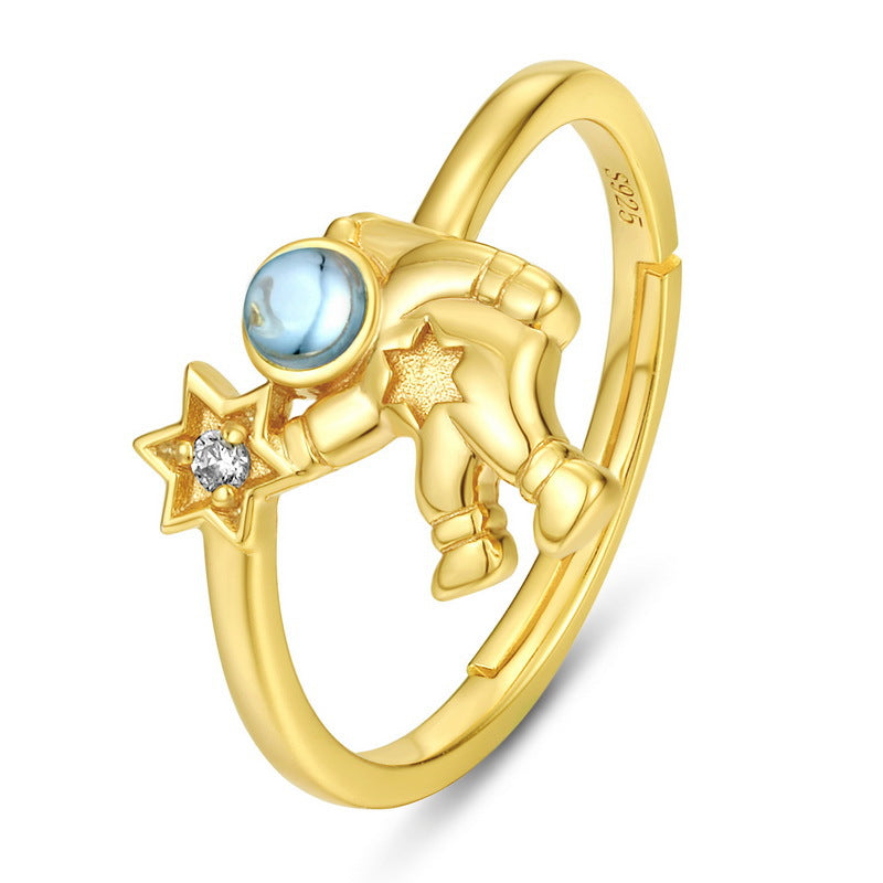 Enhance Your Style with the Natural Swiss Blue Topaz Astronaut Zircon Star Ring