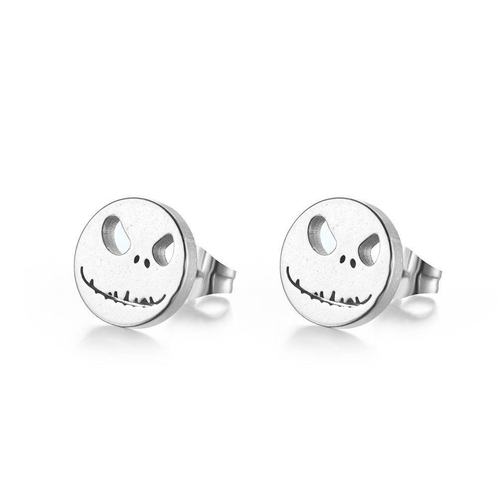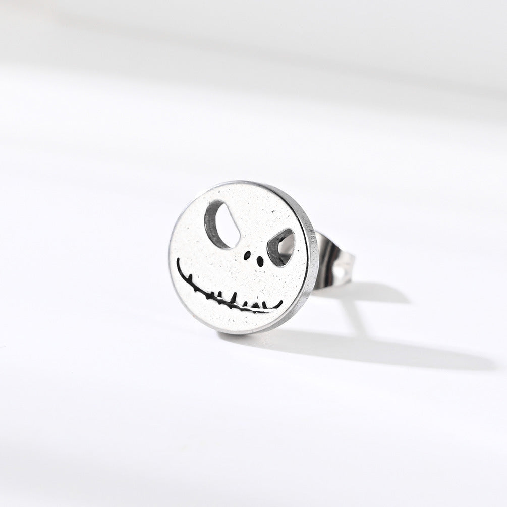 Introducing the Japanese and Korean punk style grimace mask hipster stainless steel stud earrings, hip hop hipster male and female student party personalized earrings for men. These unique earrings are designed for those who want to make a bold fashion statement. Perfect for both men and women, they embody the spirit of contemporary punk culture while maintaining an edgy yet classy appeal.