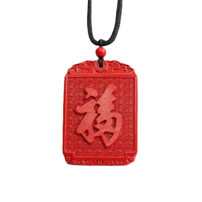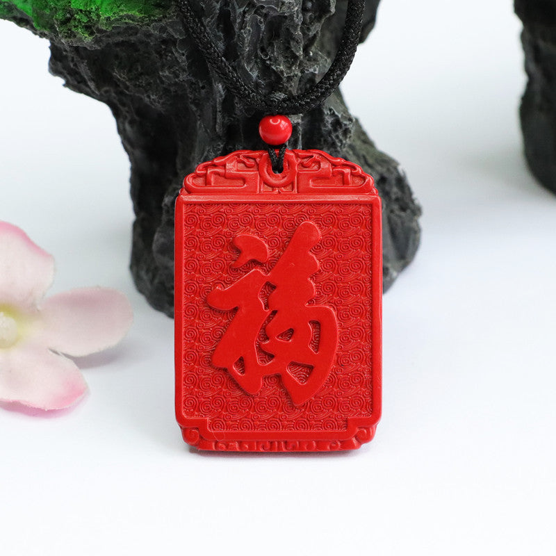 Cinnabar Pendant Red Sand Rectangle Blessing Pendant Jewelry