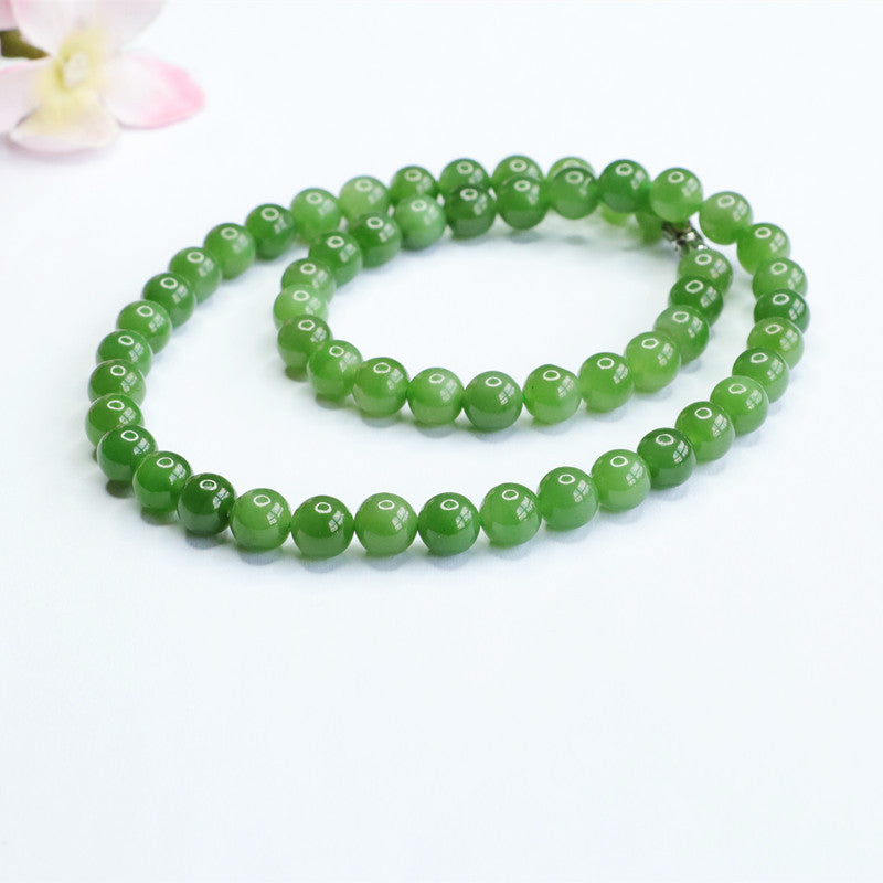 Natural Hotan Jade Necklace Jasper Apple Green Bead String Jewelry