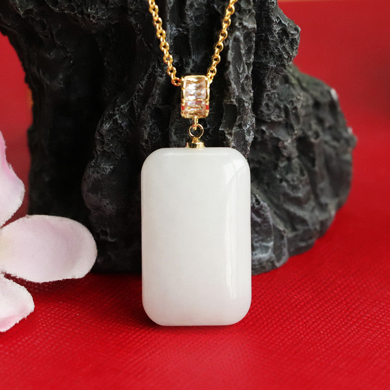 Elevate your style with our exquisite Natural Hotan Jade Rectangle Zircon Necklace from the Fortune's Favor collection by Planderful. Crafted with precision using sterling silver, this necklace features a stunning jade gem that exudes elegance and sophistication.