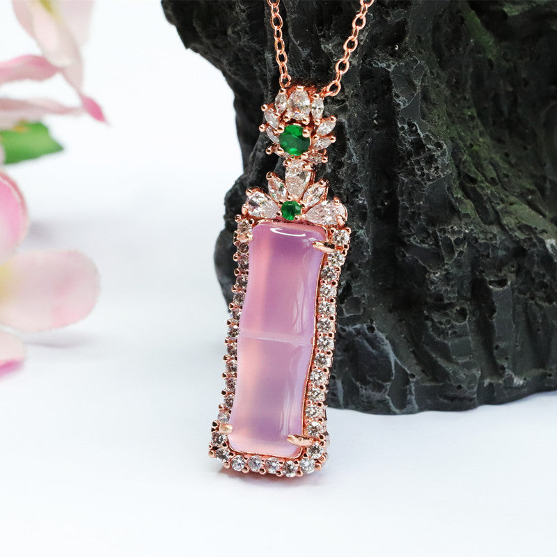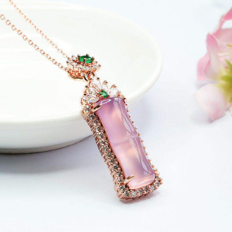 Featuring a captivating Natural Powder Chalcedony Bamboo Zircon, this pendant exudes charm and beauty. Whether for a special occasion or everyday wear, this pendant is sure to complement any outfit effortlessly.