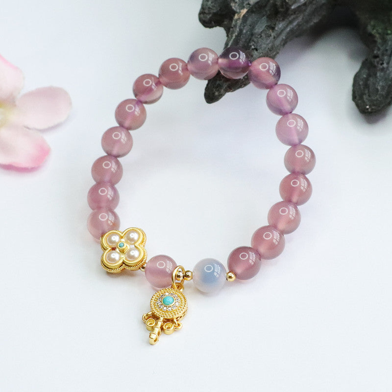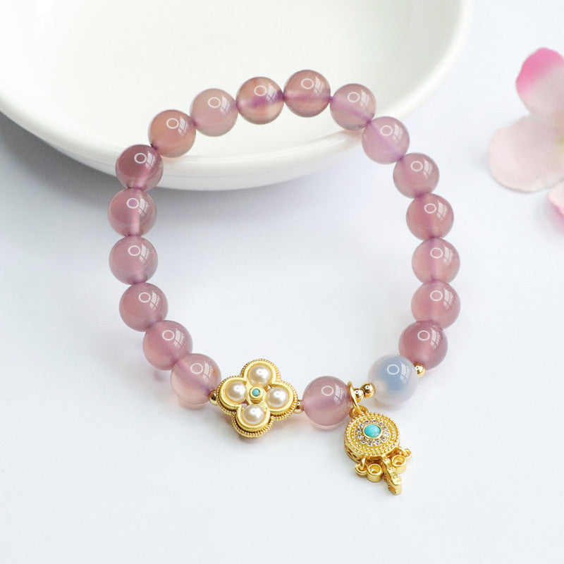 • Handcrafted with natural Purple Chalcedony and adorned with a charming Clover Pearl detail
