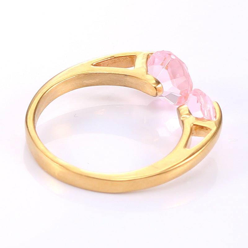 Chic Korean Pink Zircon Open Design Titanium Steel Ring for Women - Minimalist Stainless Steel Jewelry