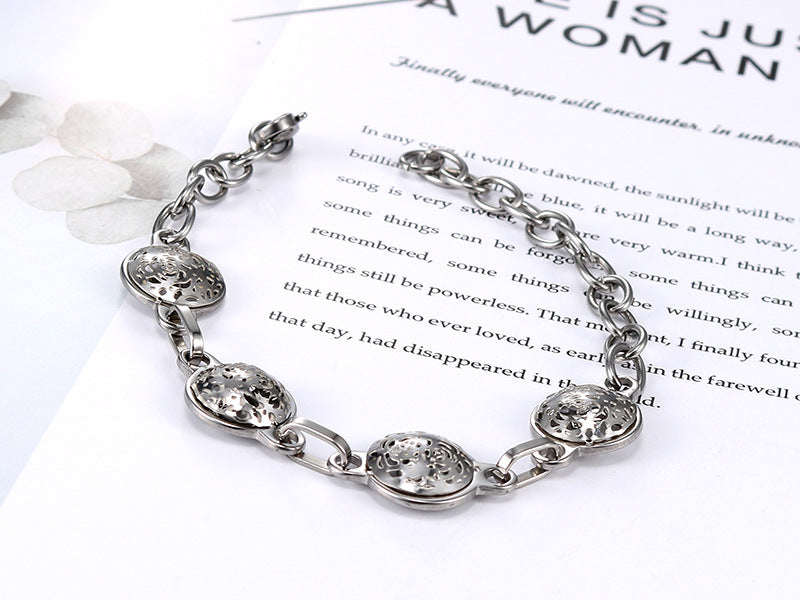 Chic Korean Snowflake Cutout Titanium Steel Bracelet for Women, Simple and Stylish Stainless Steel Jewelry