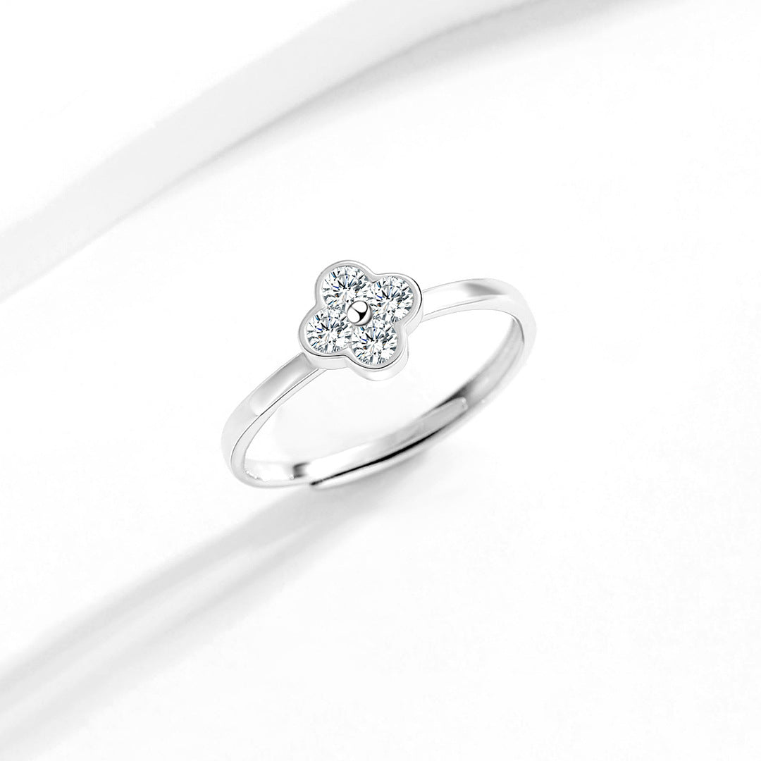 Planderful S925 Sterling Silver Four Leaf Clover Zircon Ring For Women Adjustable