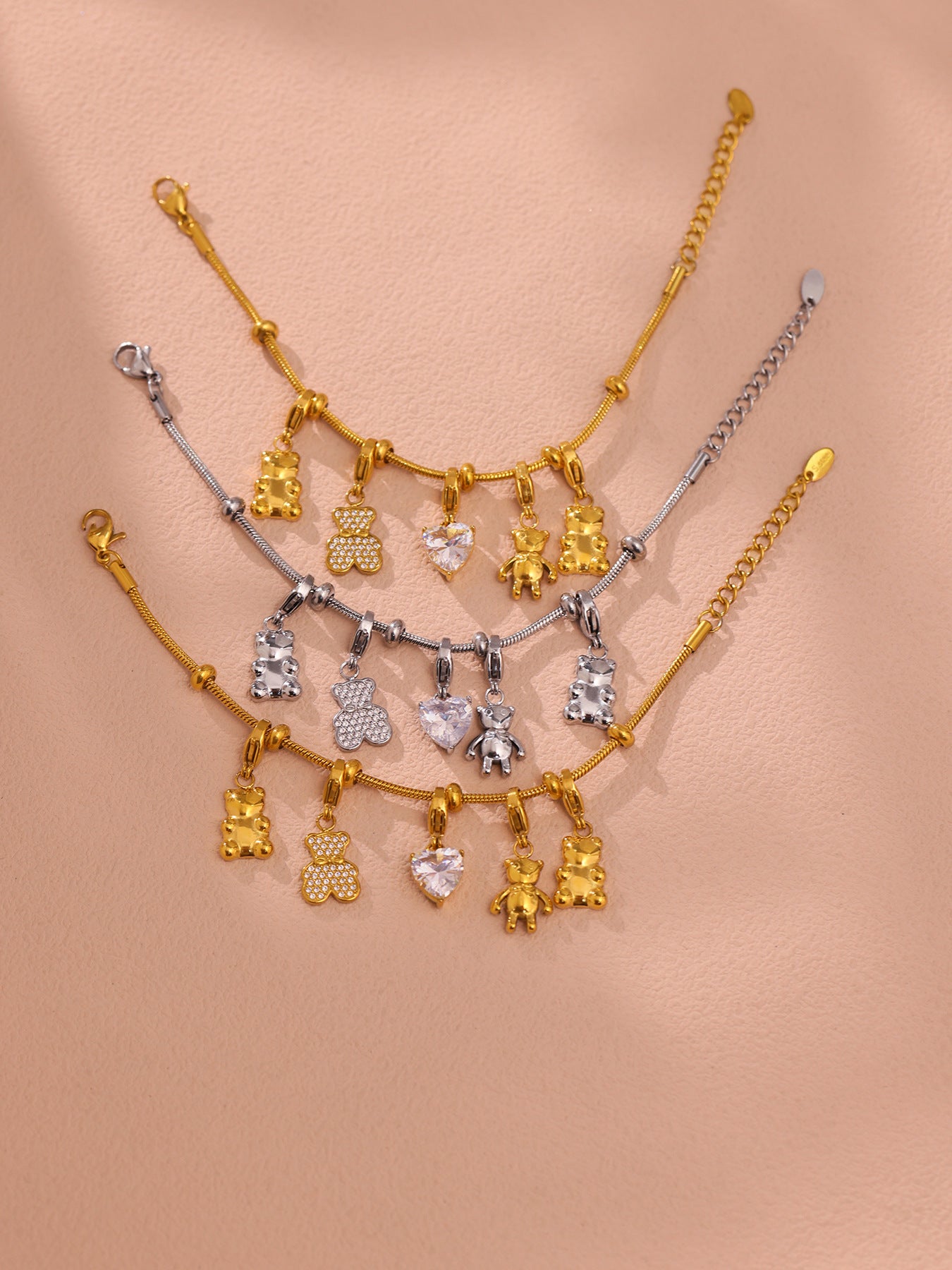 Elevate everyday style with the Planderful Bear Full Zircon Super Flash bracelet. This piece features stainless steel plated in 18K gold, a playful bear motif, and a full pavé of brilliant 5A zircon stones. Designed for trend-forward wear, it belongs to the Everyday Genie collection and adds a touch of whimsy and sparkle to any look.