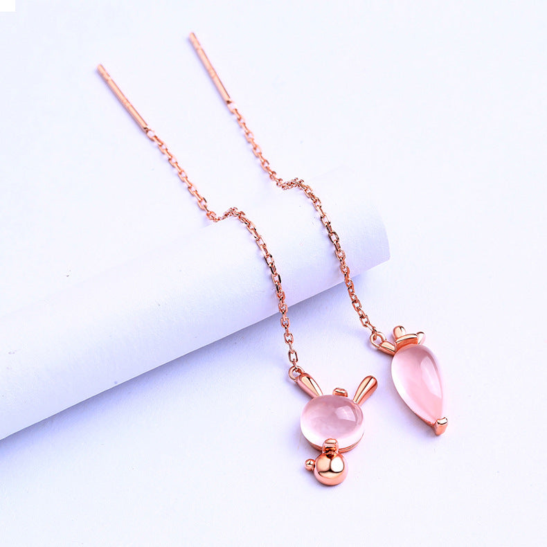 These exquisite Pink Crystal Carrot and Bunny Asymmetrical Ear Line Earrings are the perfect way to accessorize an outfit. The Carrot and Bunny both crafted with sterling silver plated in rose gold and delicate accents of Barbie Pink Crystal for a look that is both modern and vitality. Make a luxurious statement with these iconic pieces.