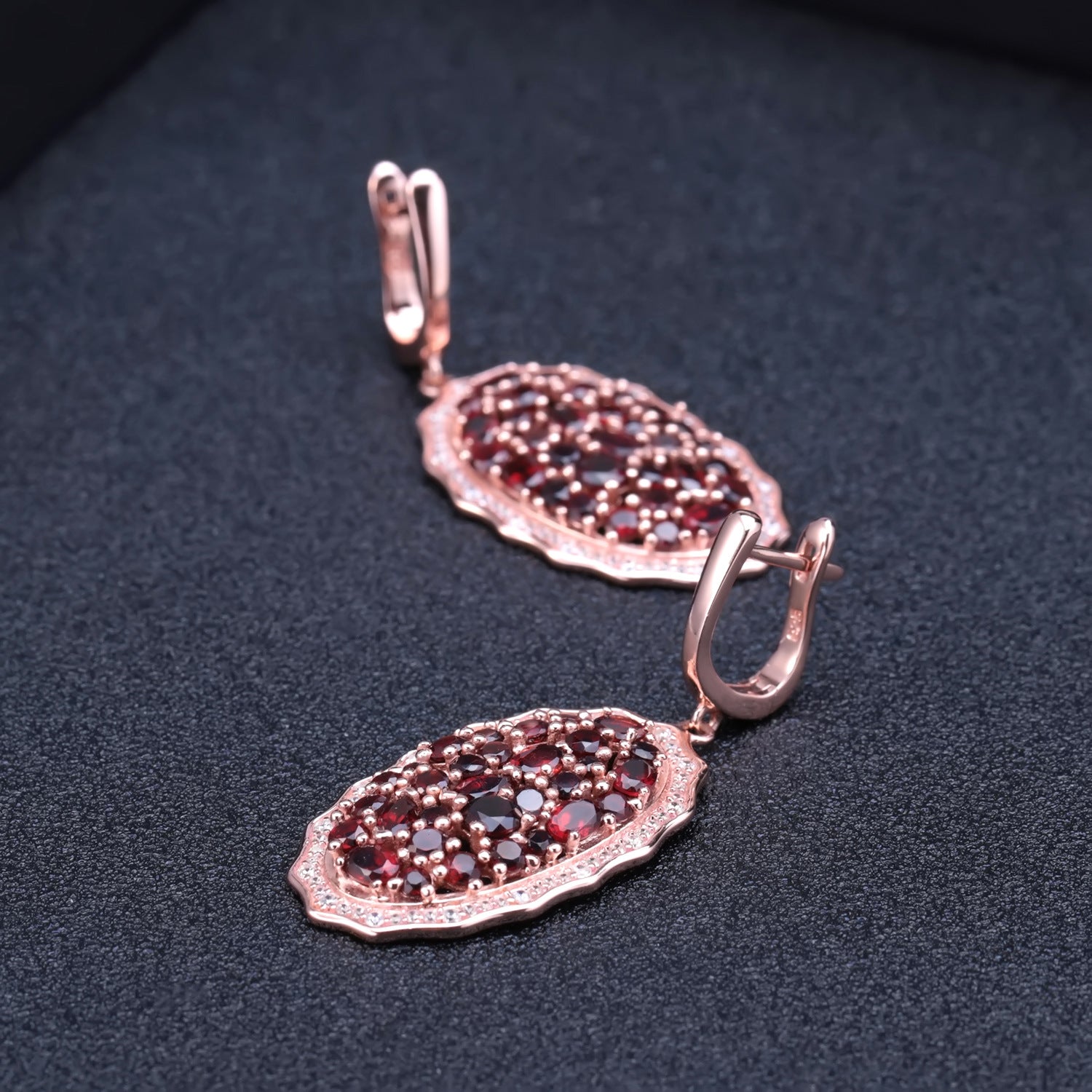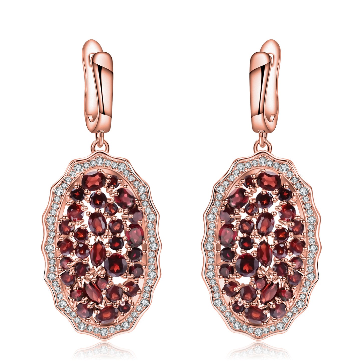 This timeless drop earrings feature an oval pendant set with a group of natural garnets. Crafted from sterling silver, this earrings make a perfect accessory for any formal occasion.