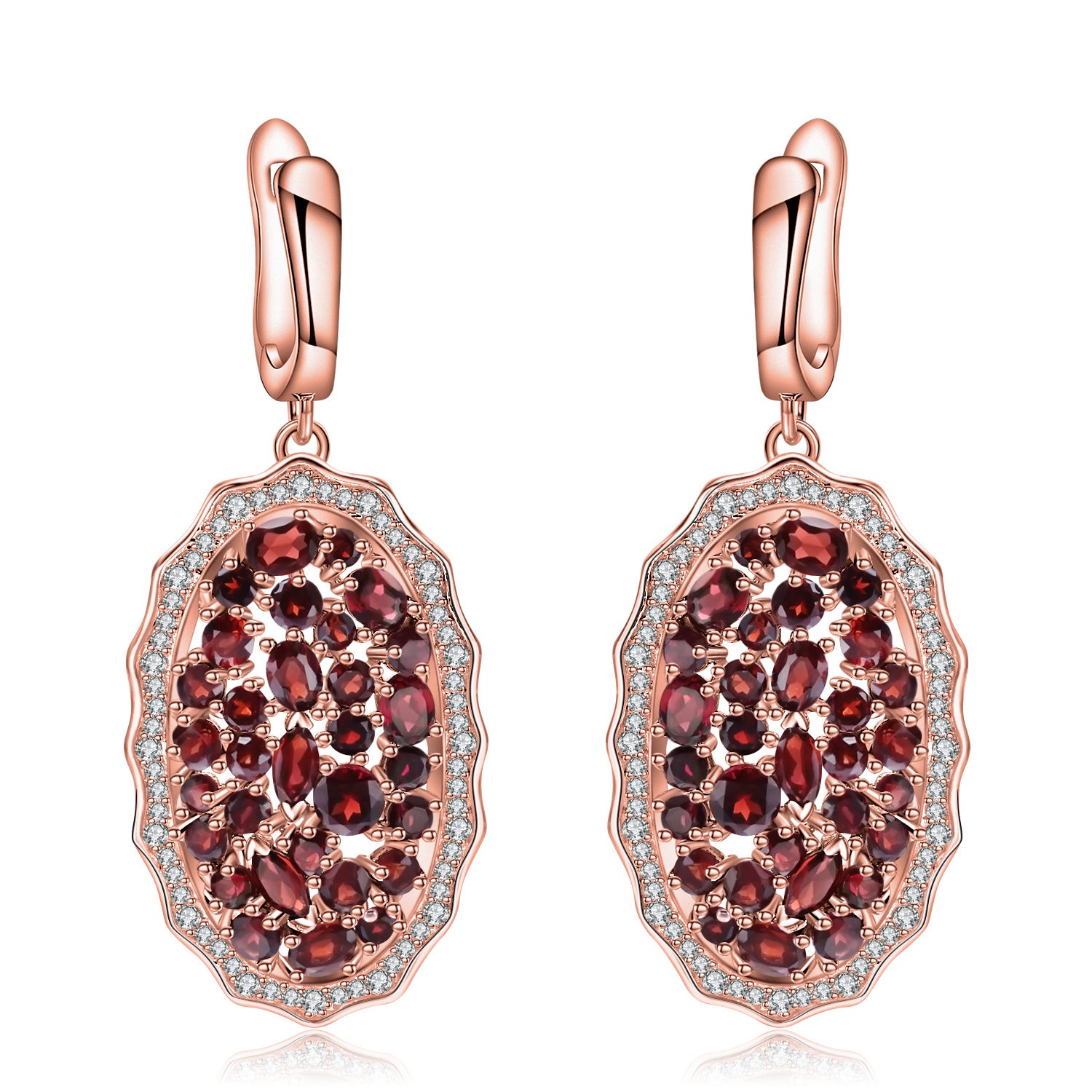 Luxury Style Group Inlaid Natural Garnet Oval Silver Drop Earrings for Women