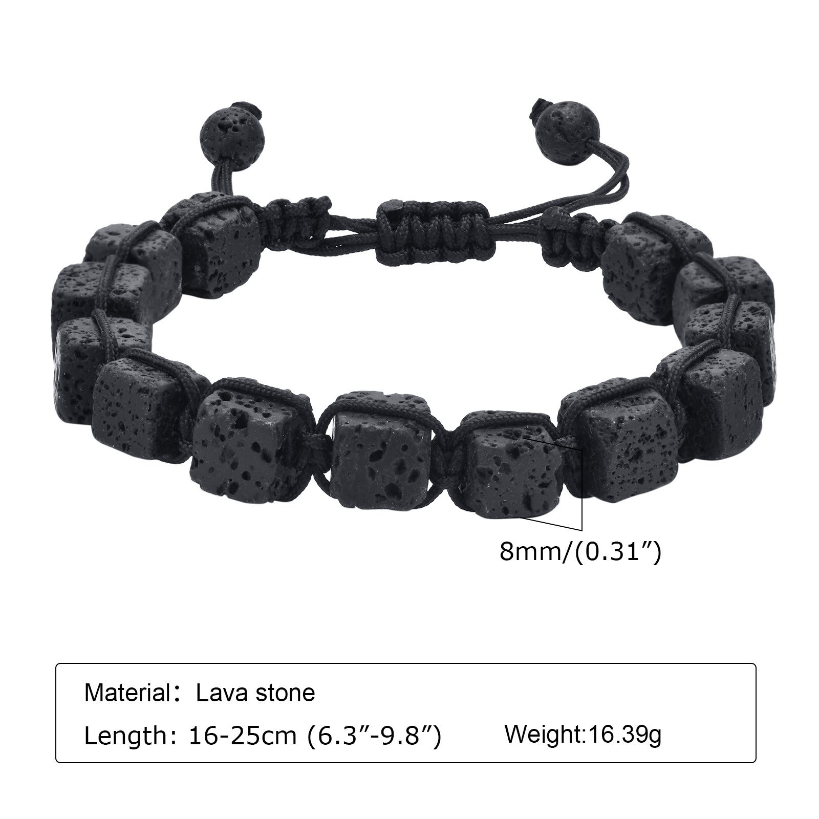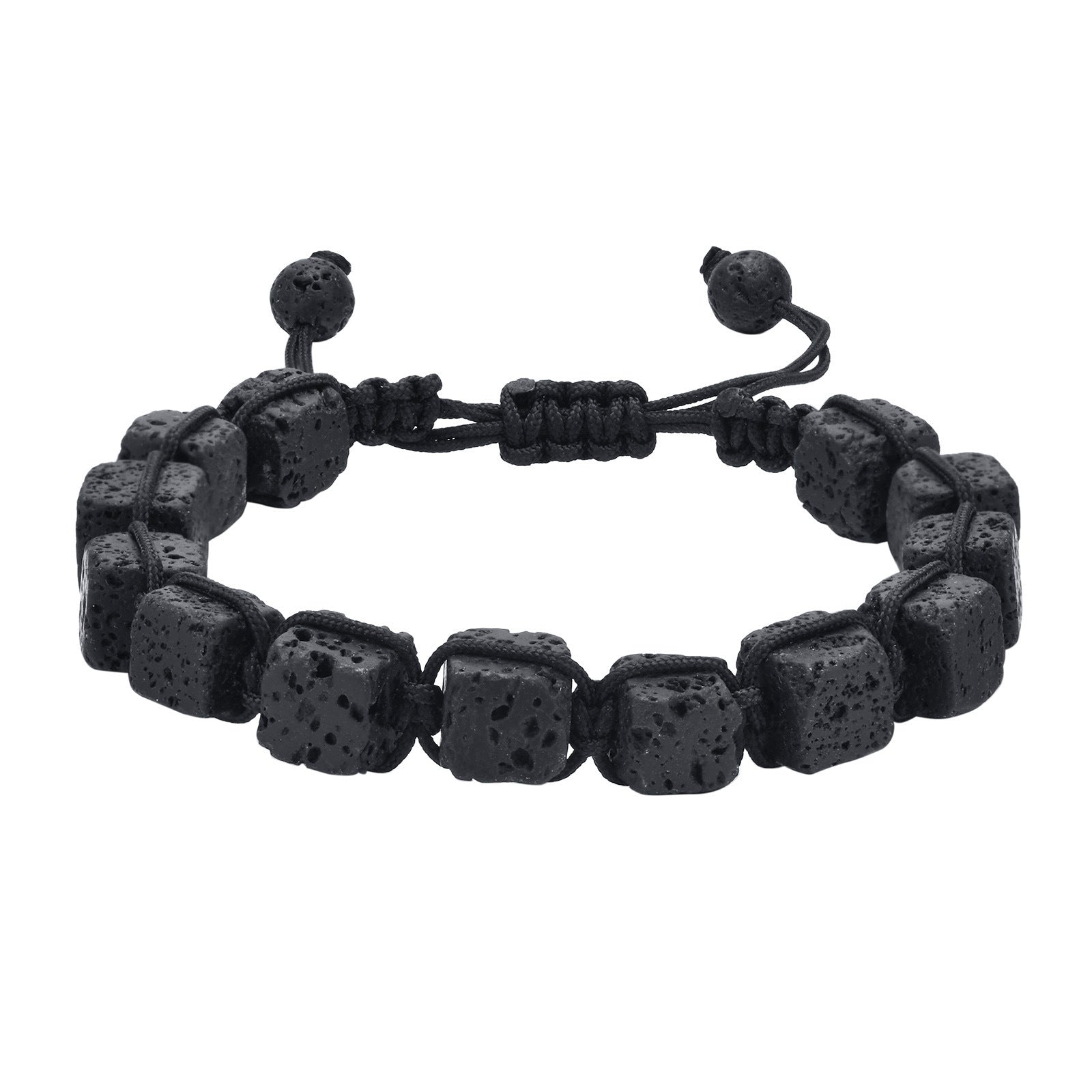 Men's Black Bracelet Adjustable Square Volcanic Stone Jewelry