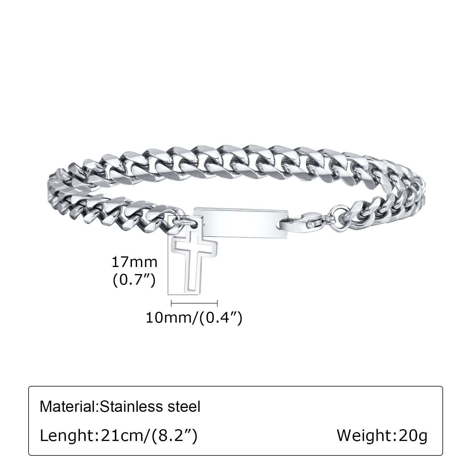 • Stylish Design: The hollow cross and square links add a unique flair, making this piece stand out from ordinary bracelets.