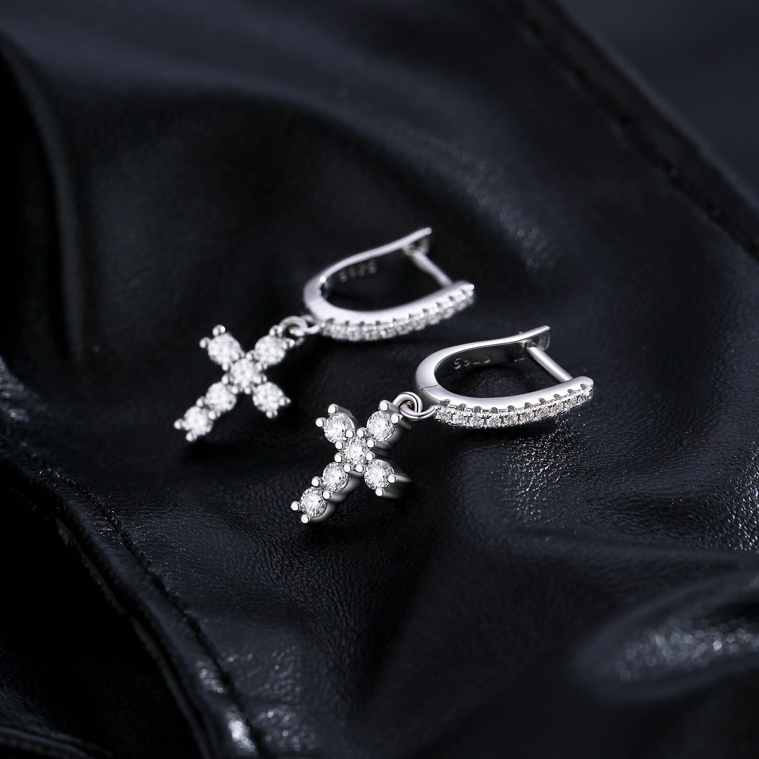D Color Mozzarella Diamond S925 Silver Cold Wind Personality Bright Cross Earrings by Planderful delivers an exquisite touch of elegance and sparkle for any occasion. These stunning earrings are designed to enhance your style while showcasing the brilliance of Moissanite.
