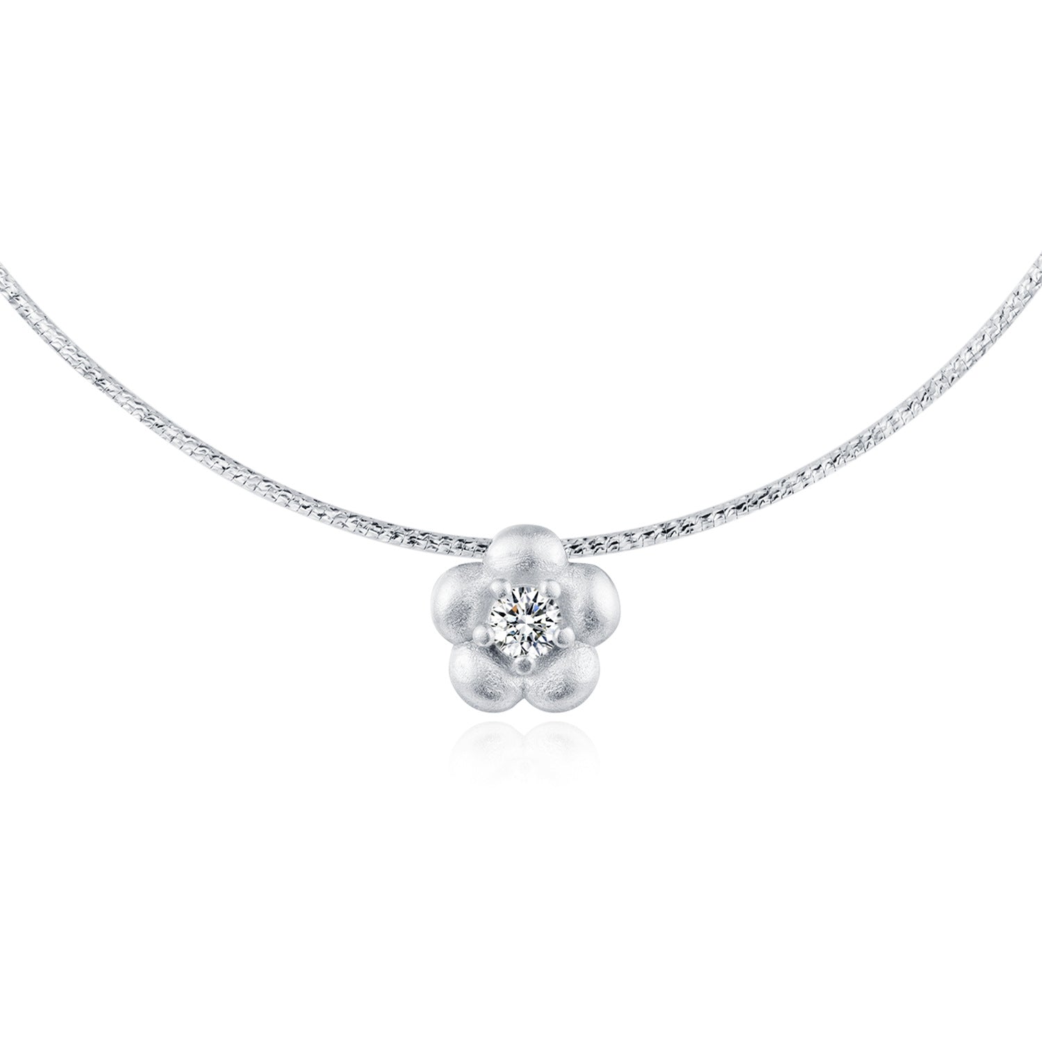 Planderful Everyday Genie S925 Silver Flower Necklace – Trendy Sandblasting Texture with Super Flash Zircon Set