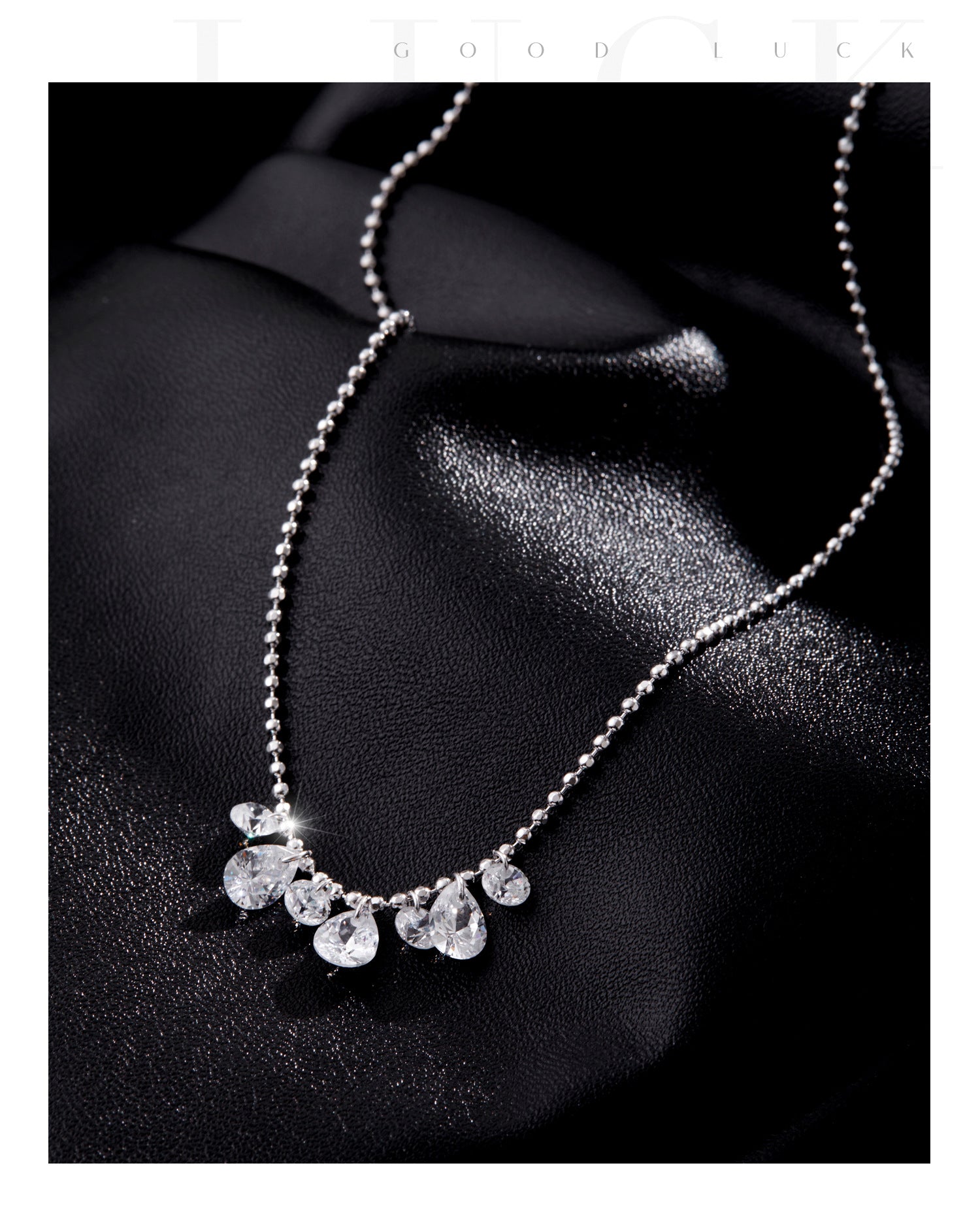 Planderful Collection S925 Silver Sparkling Beanie Necklace – Exquisite Water Drop Zircon Collarbone Chain For Women