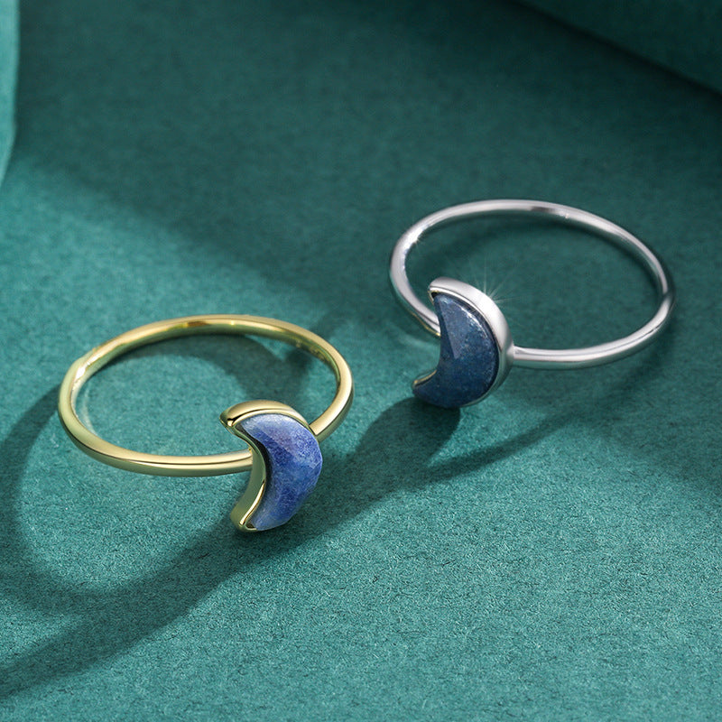 Small and Unique S925 Pure Silver Blue Aventurine Quartz Moon Ring