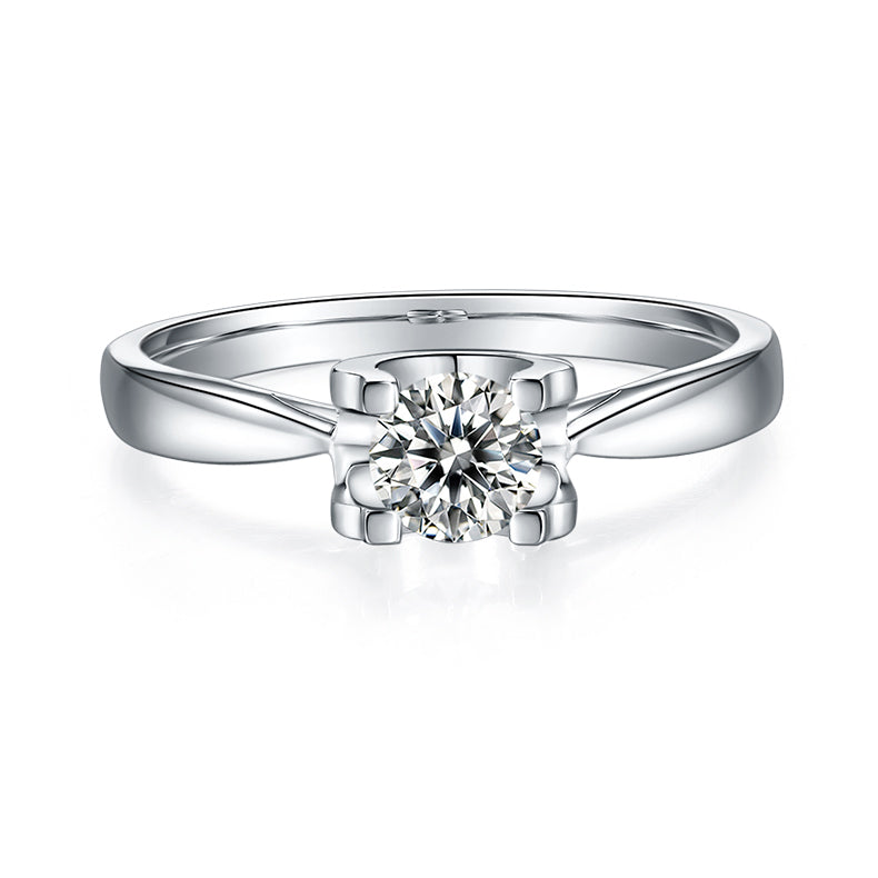 Ox Head Prongs 0.5Carat Round Moissanite Engagement Ring