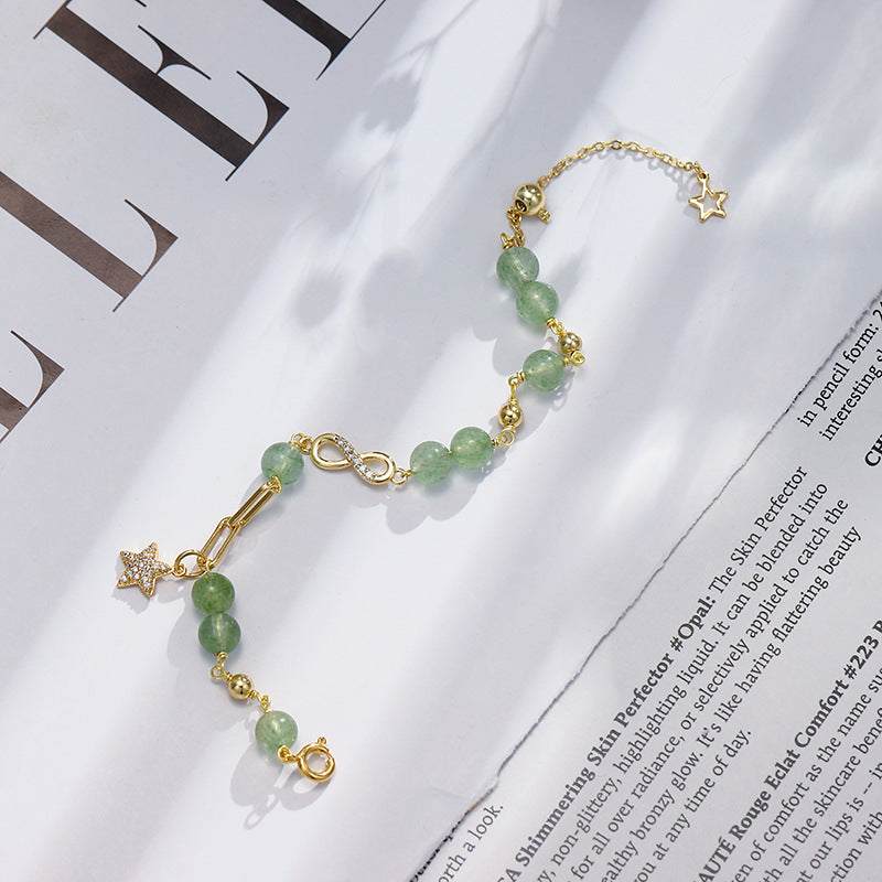 Elevate your style and invite good fortune with the Natural Green Strawberry Bracelet, a perfect accessory for those seeking a touch of sophistication and positivity in their lives.