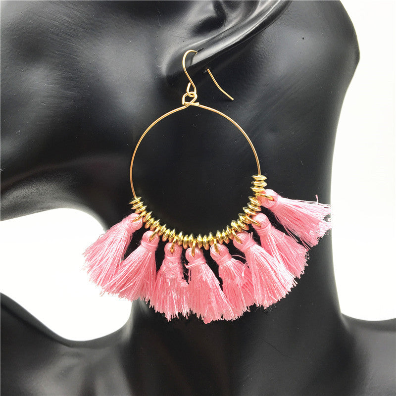 Exaggerated Personality Round Alloy Tassel Earrings - Vienna Verve Collection