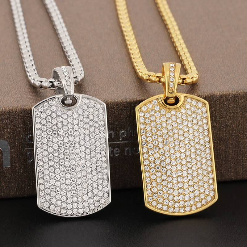 Rock-inspired Rhinestone-Studded Stainless Steel Men's Pendant - European and American Hip-Hop Fashion Accessory